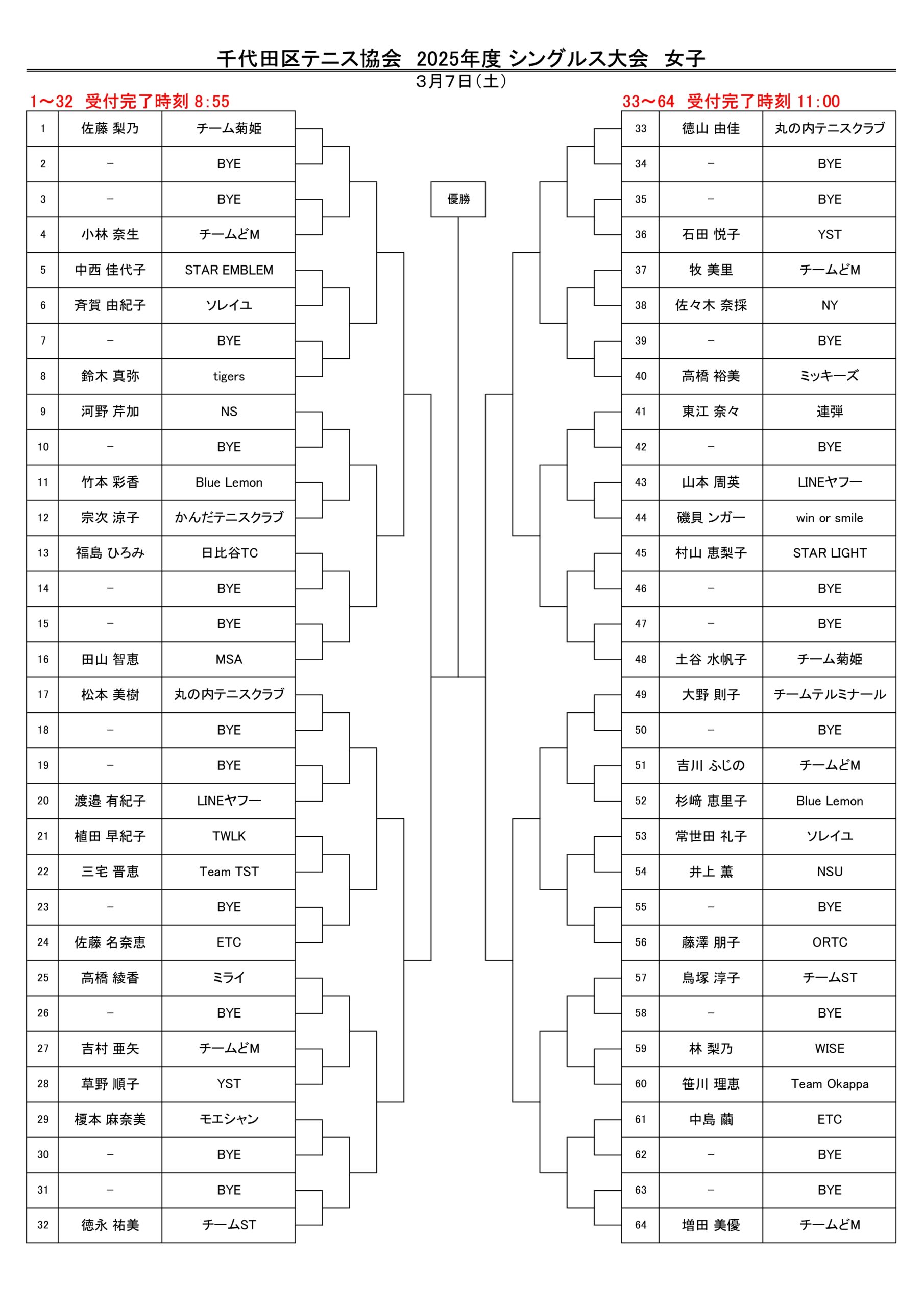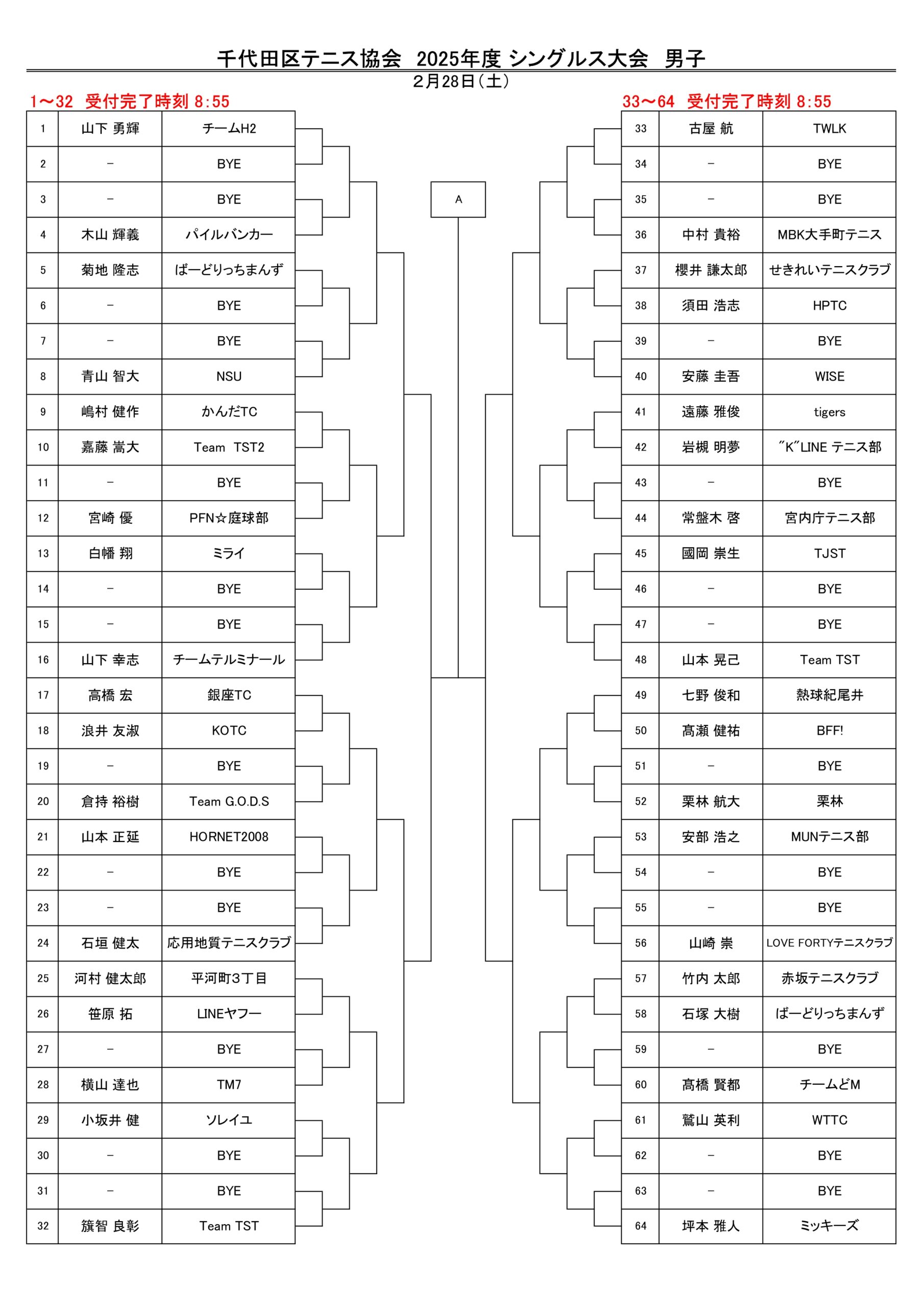 2026年3月シングルス大会(2025年度大会)のドロー表です。